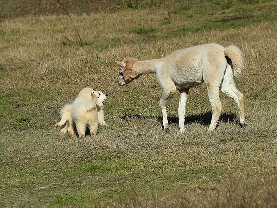 Cuccioli di Maremmano con alpaca